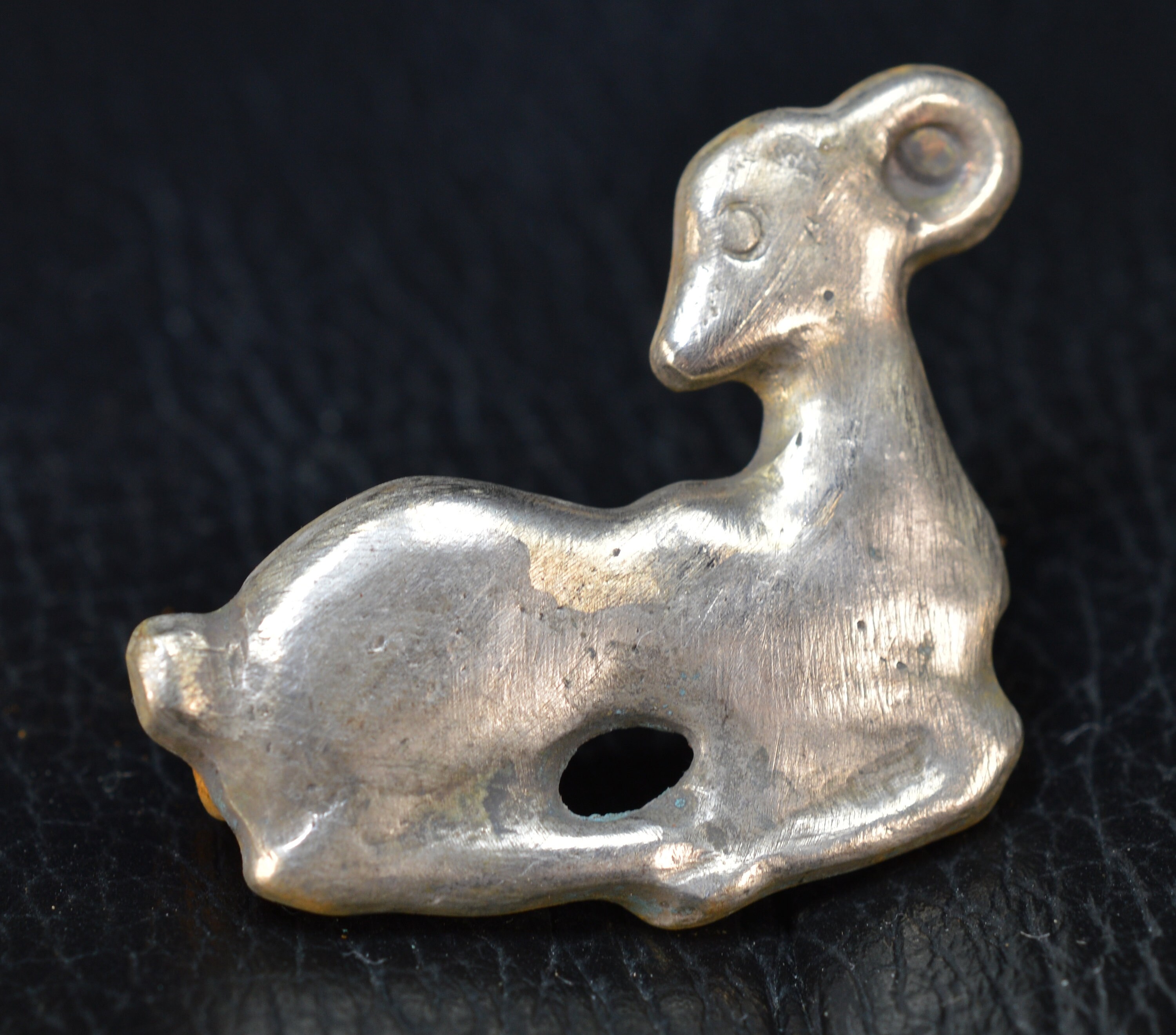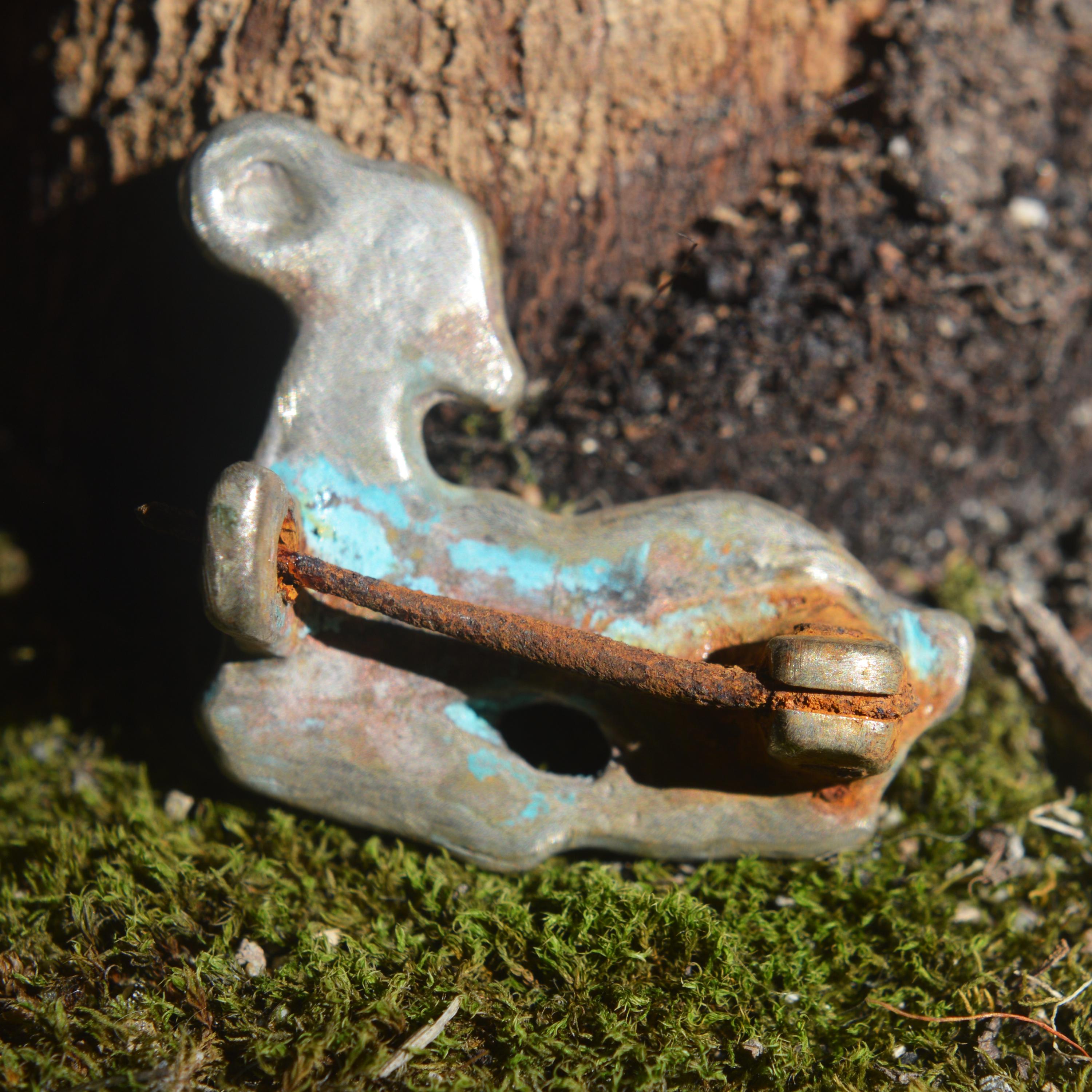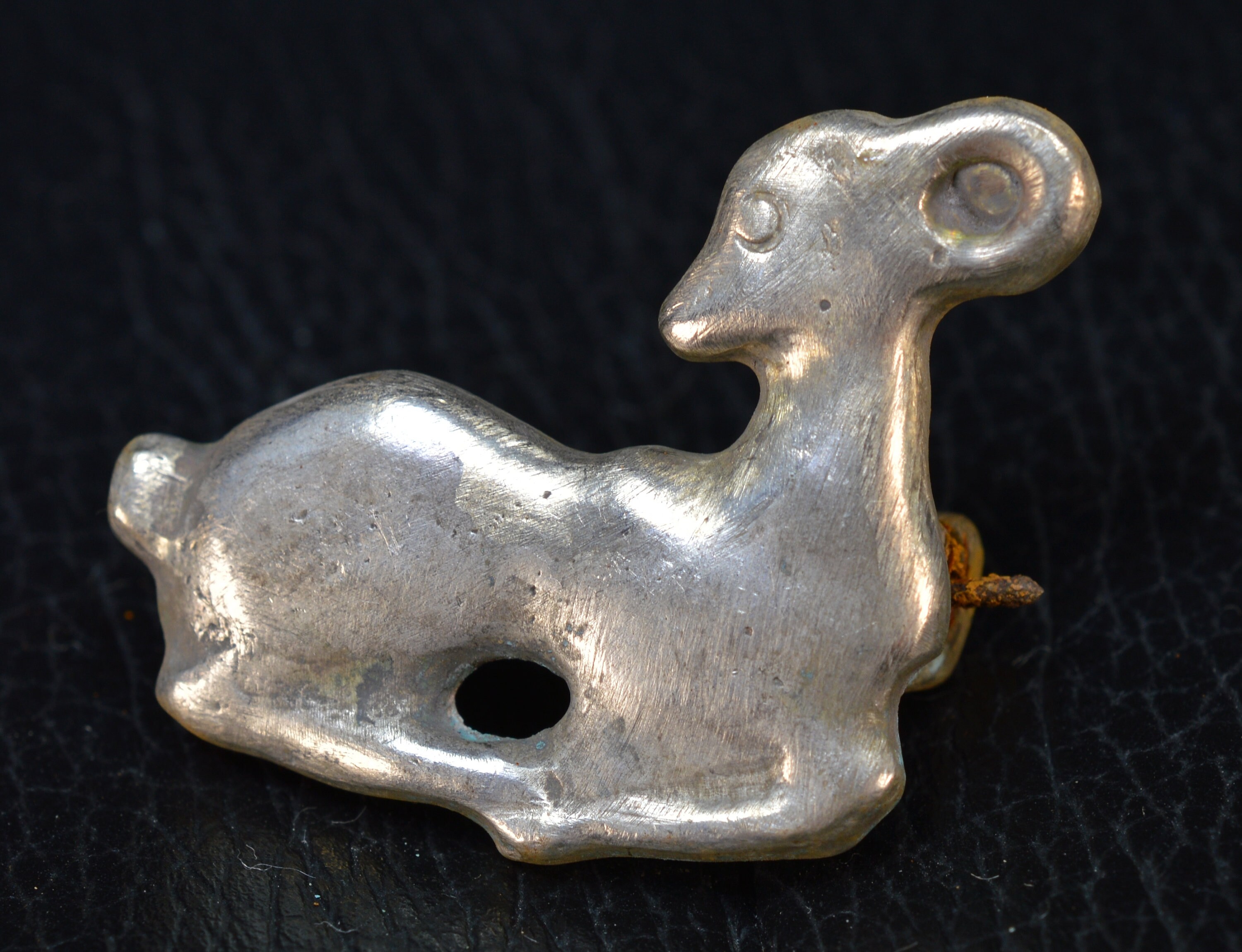 Roman Solid Silver Zoomorphic Brooch Fibula with Iron Pin