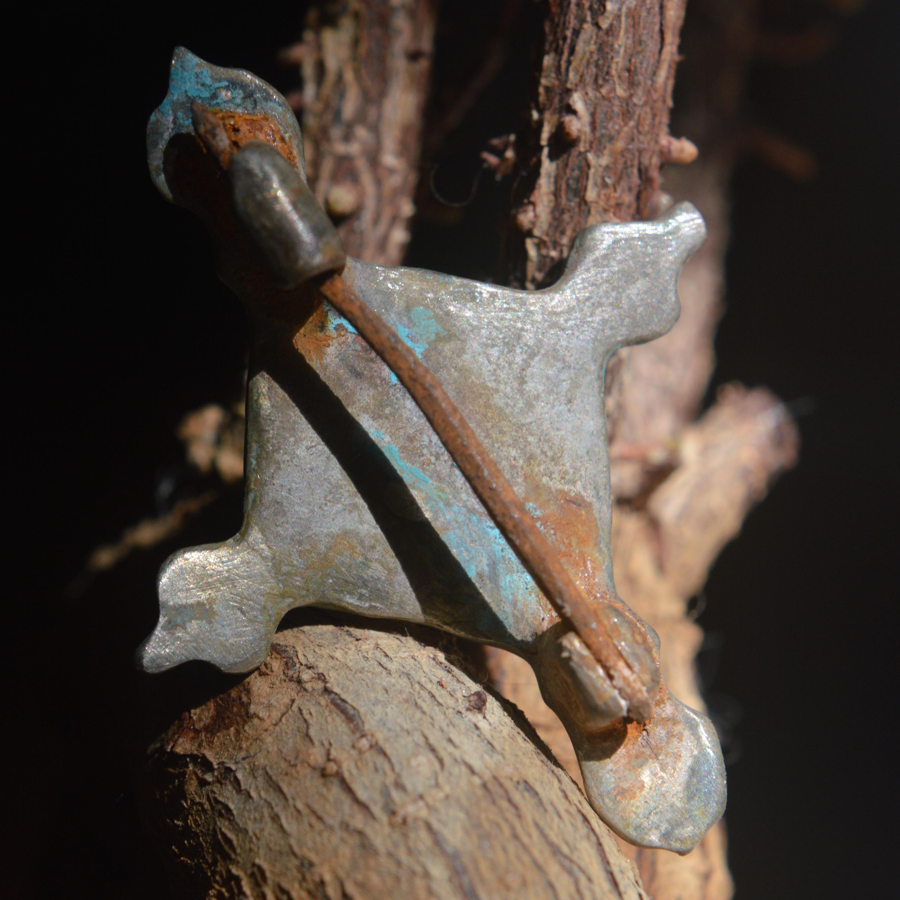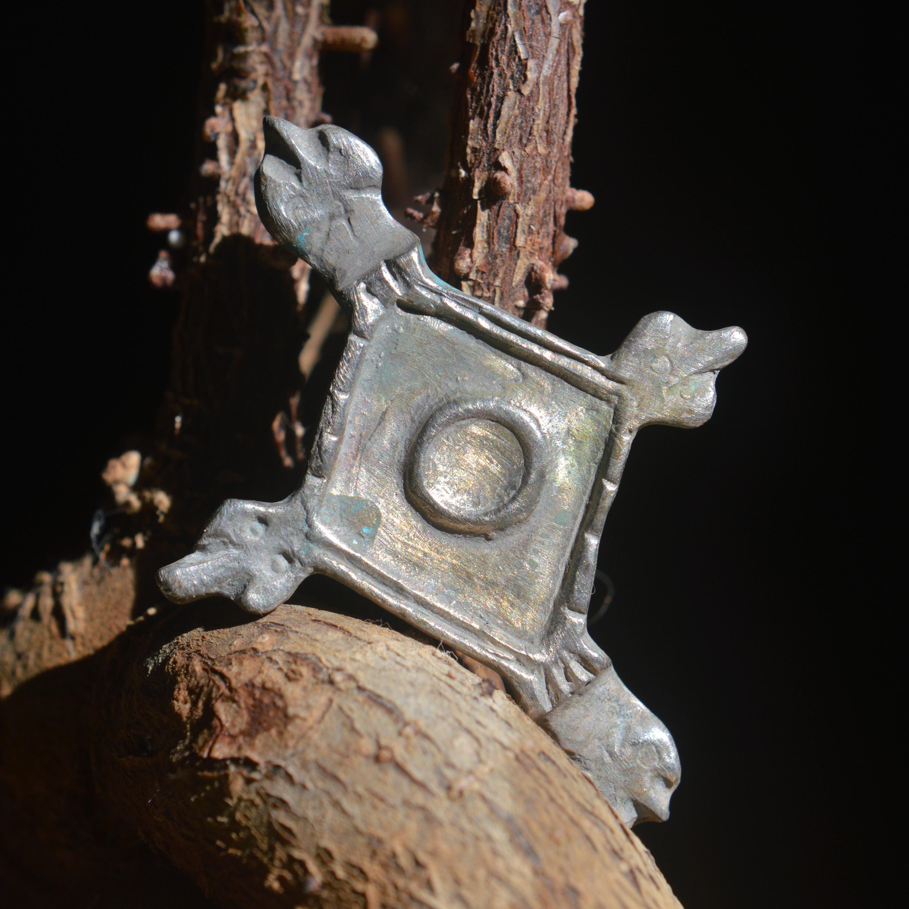 Roman Solid Silver Brooch Fibula with Iron Pin