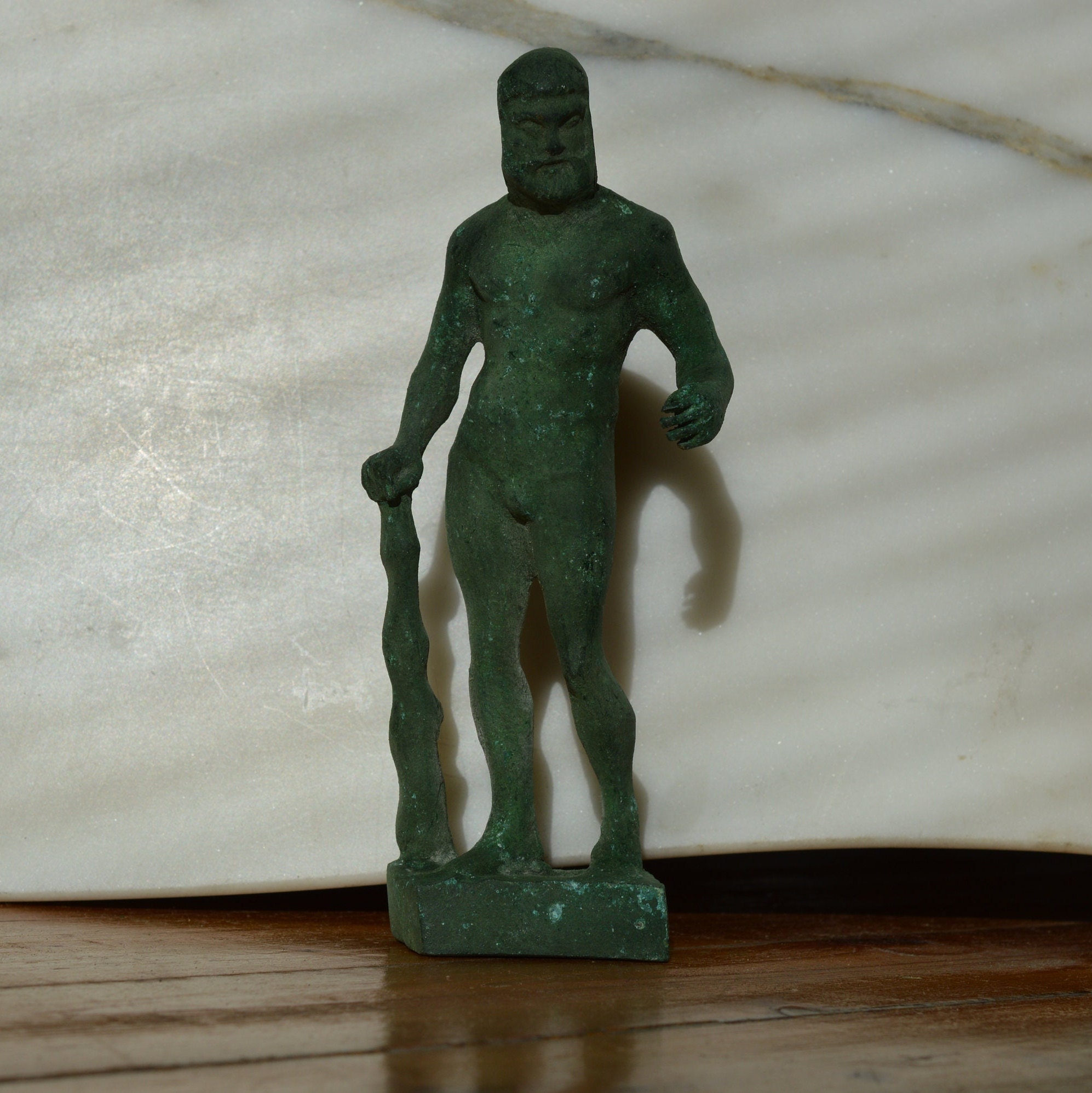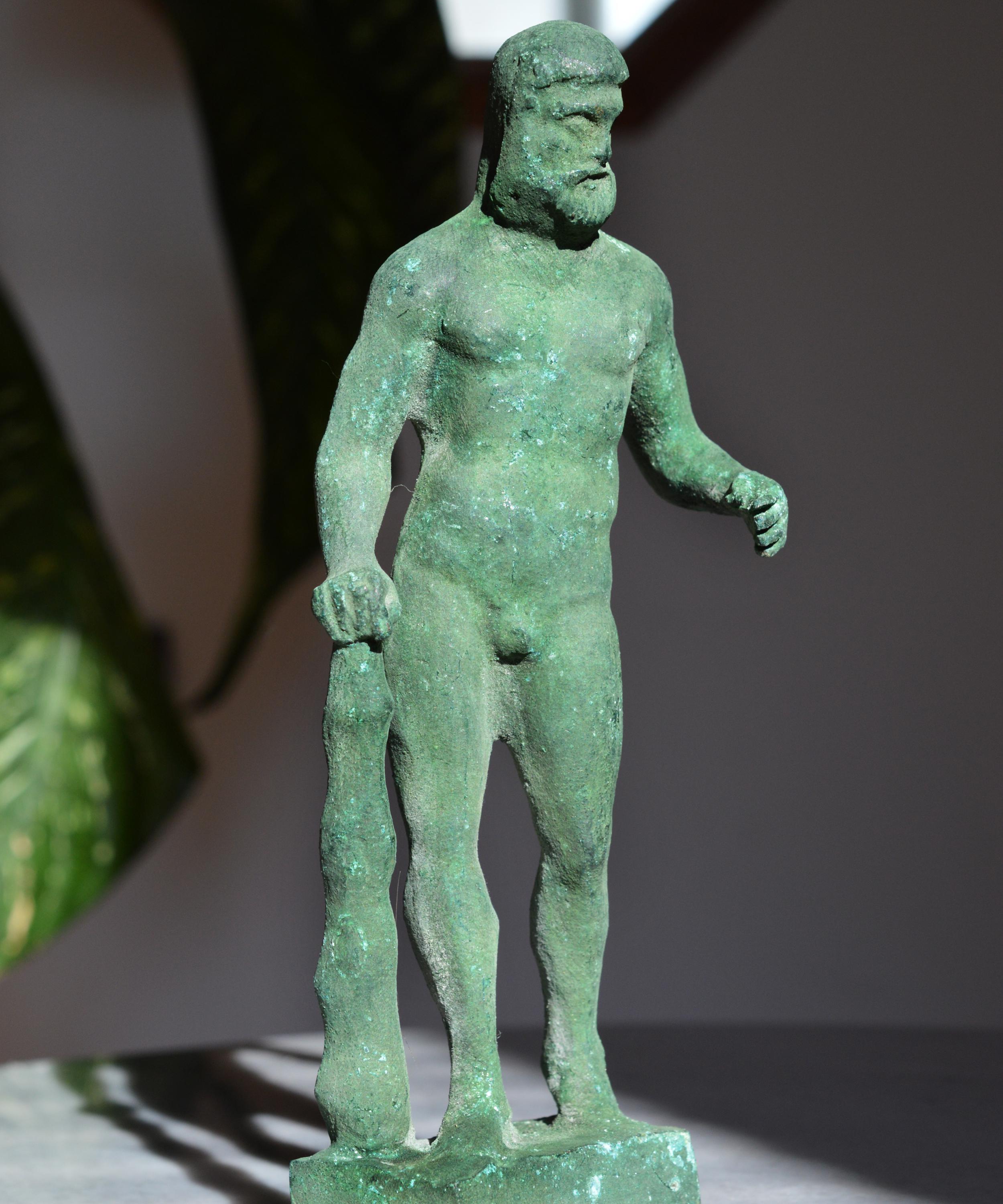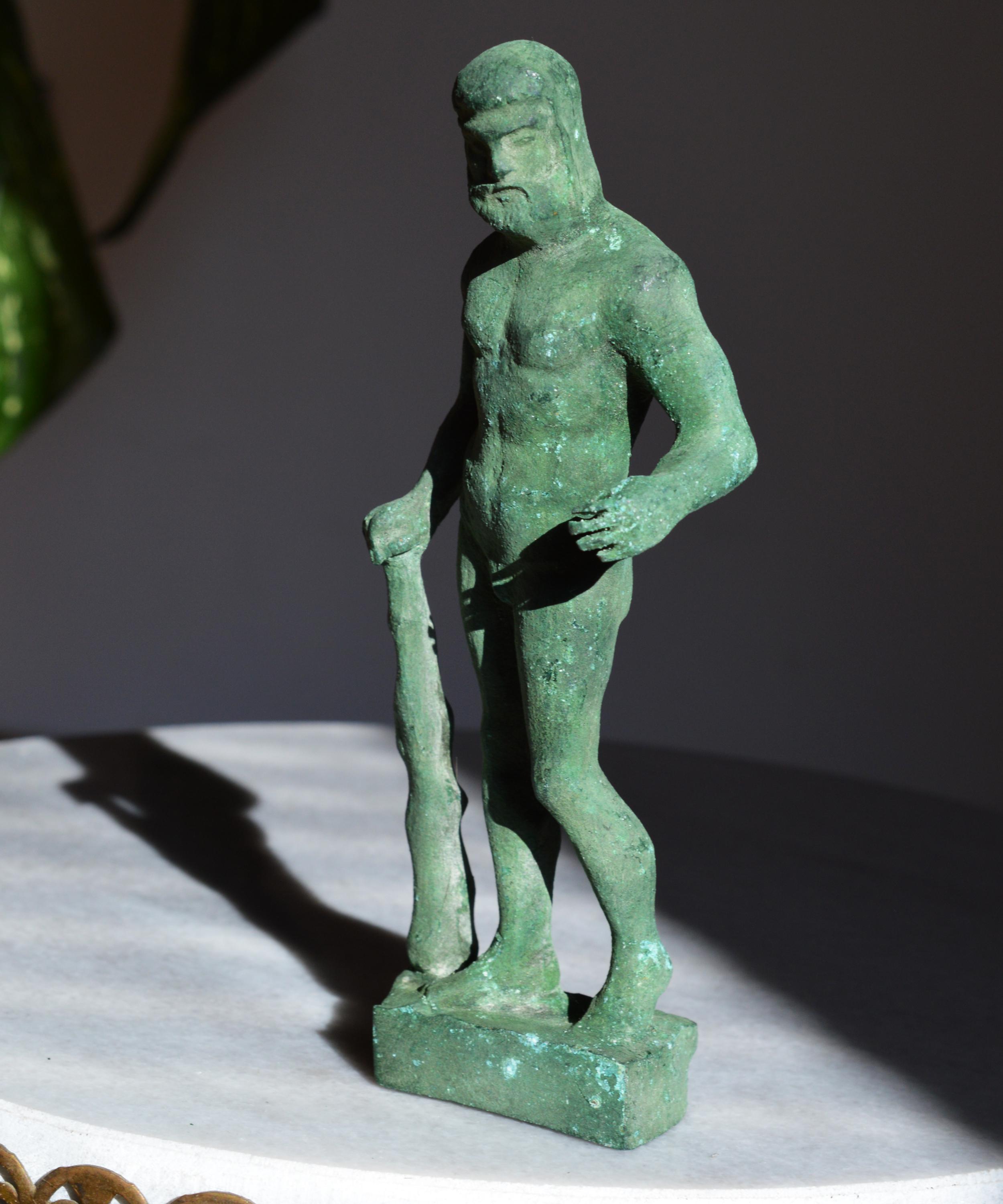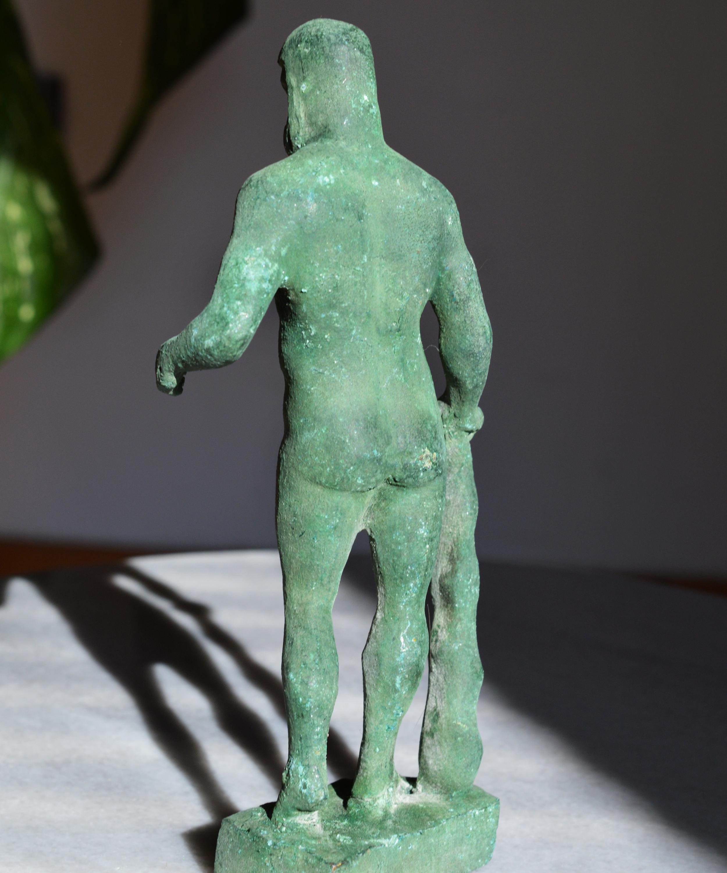Large Greek Bronze Statue of Hercules holding a Club on a Bronze Postament