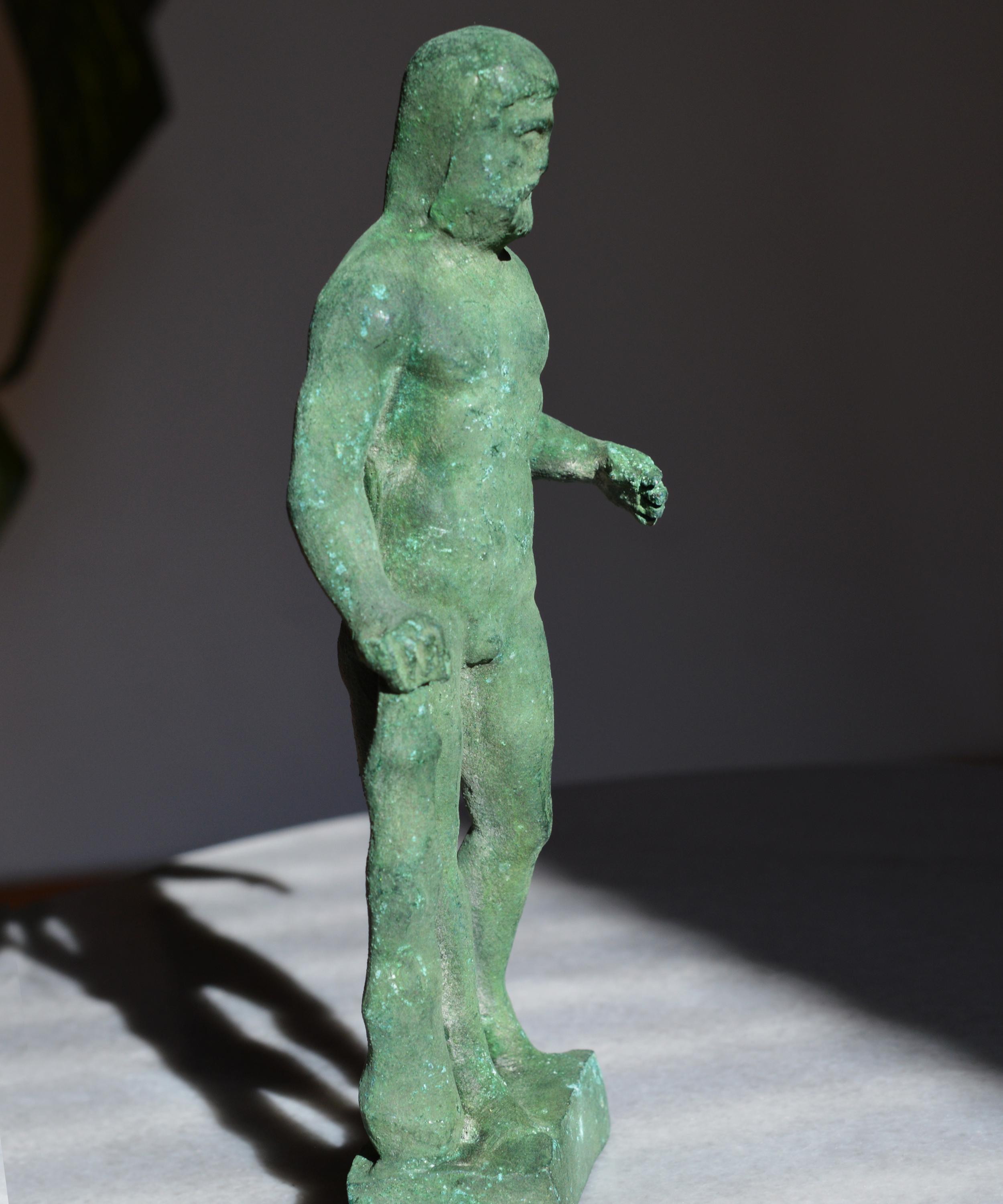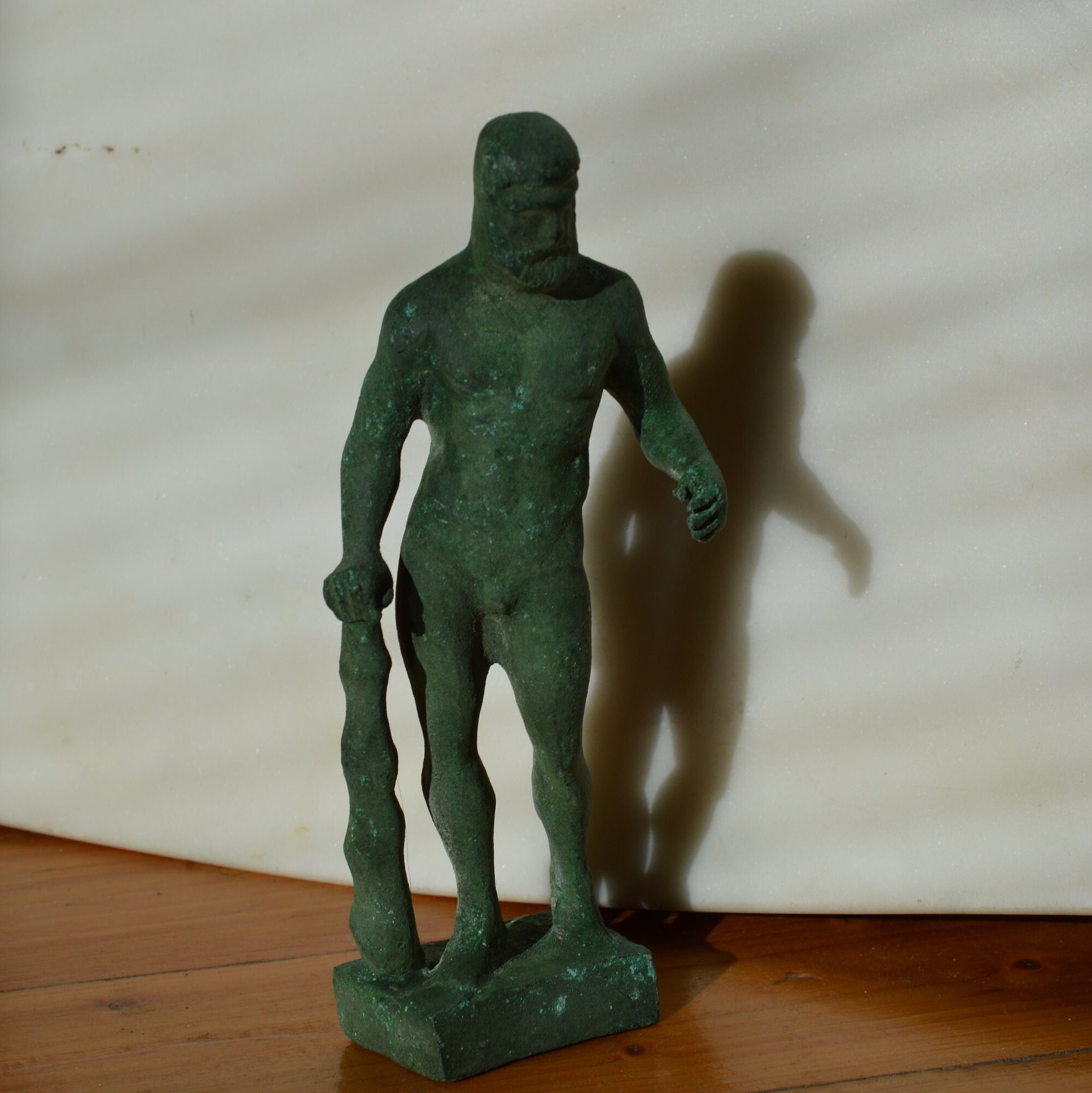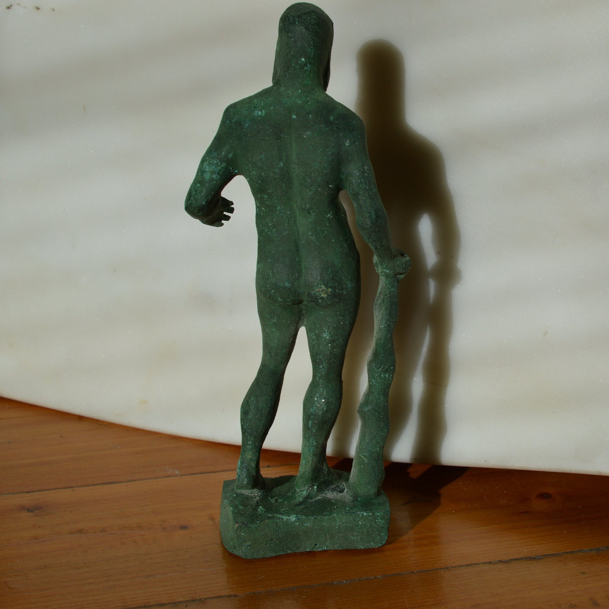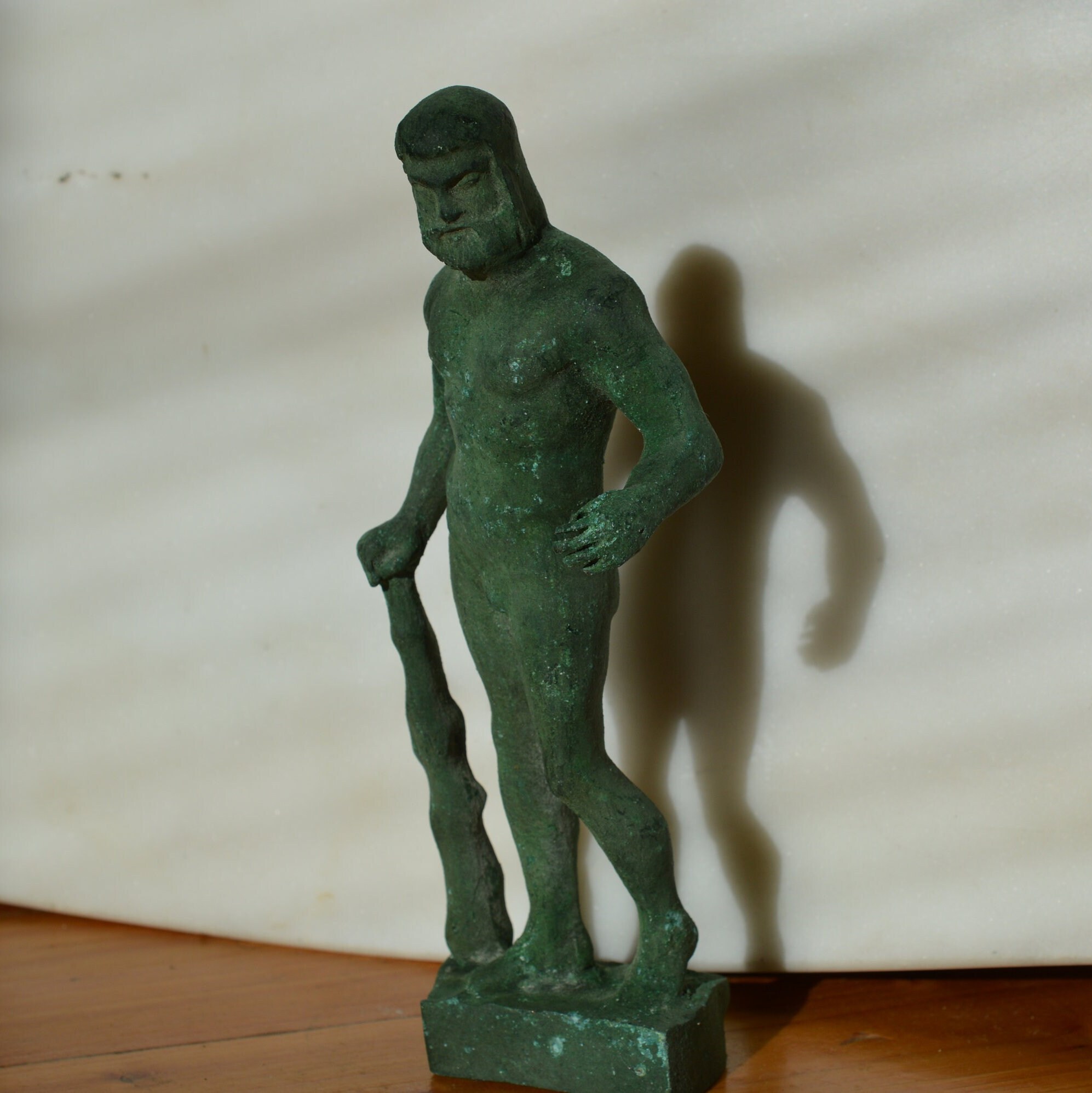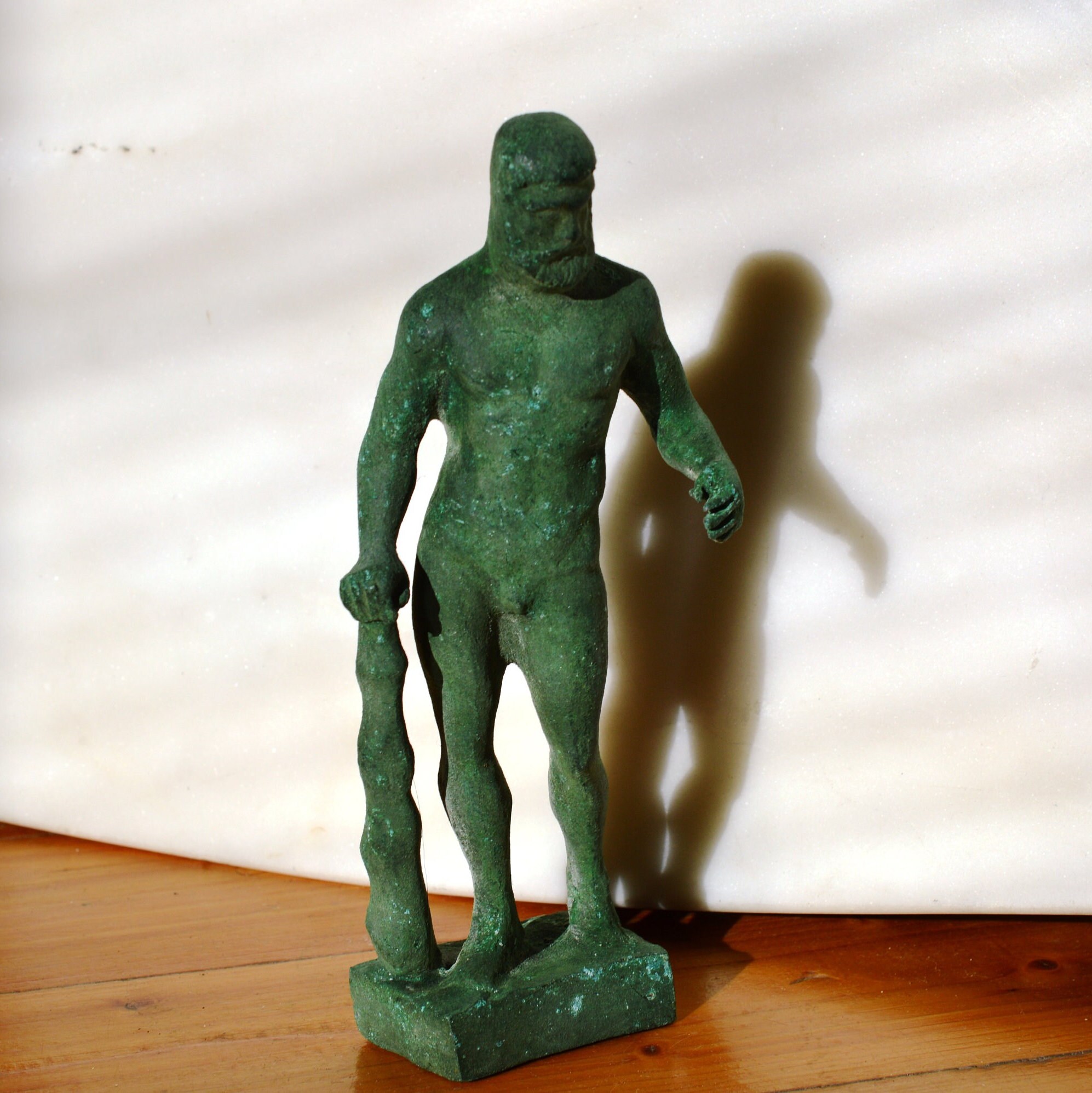 Large Greek Bronze Statue of Hercules holding a Club on a Bronze Postament
