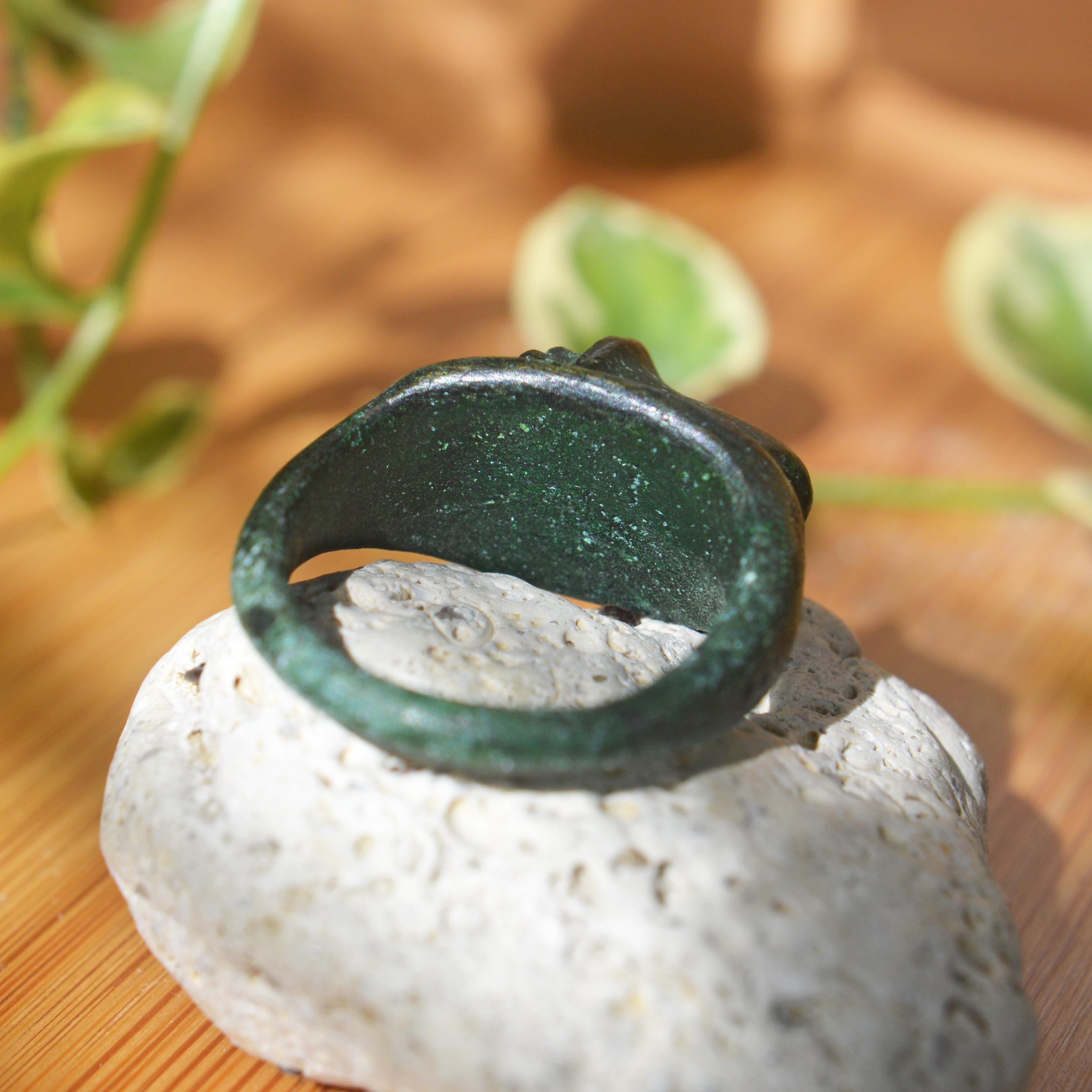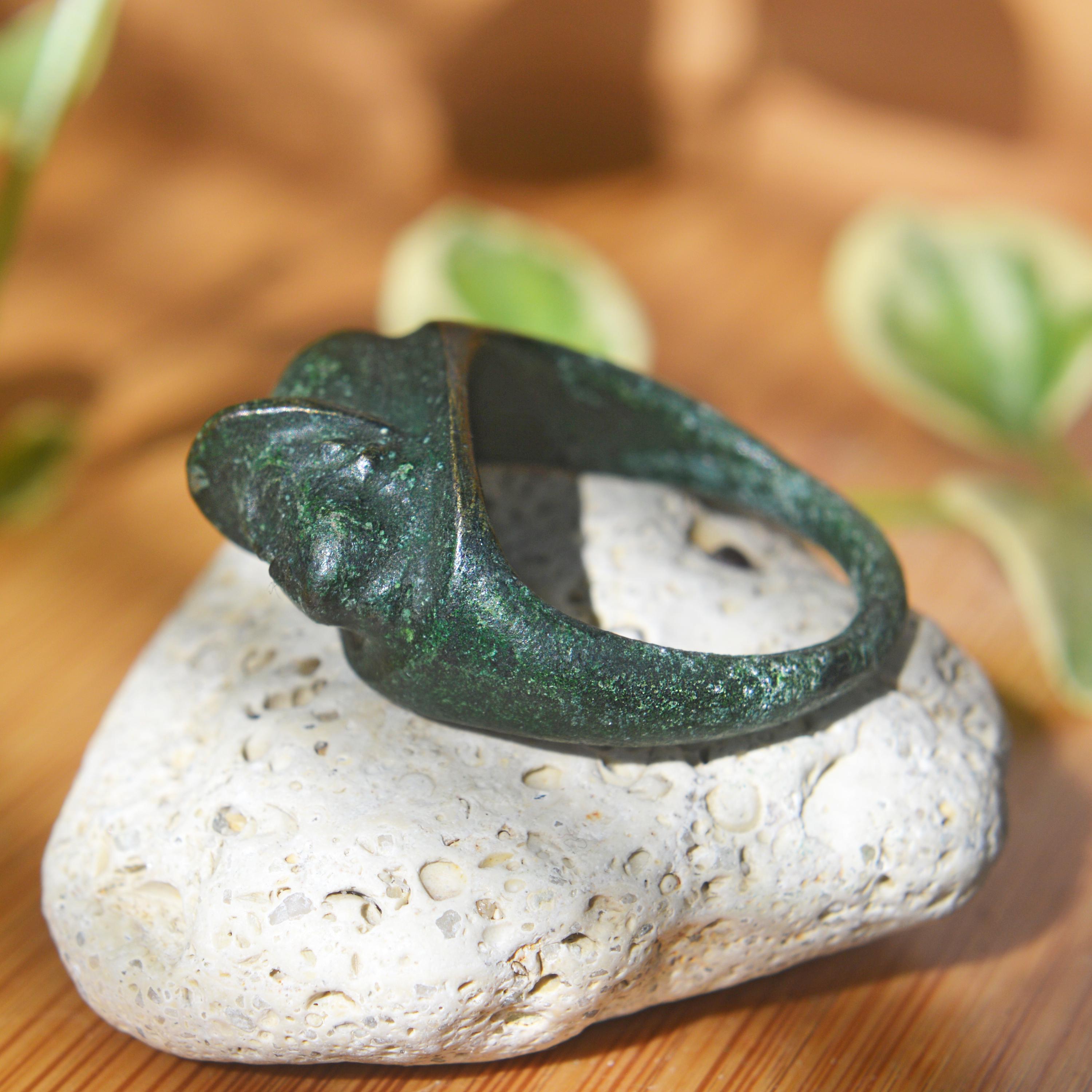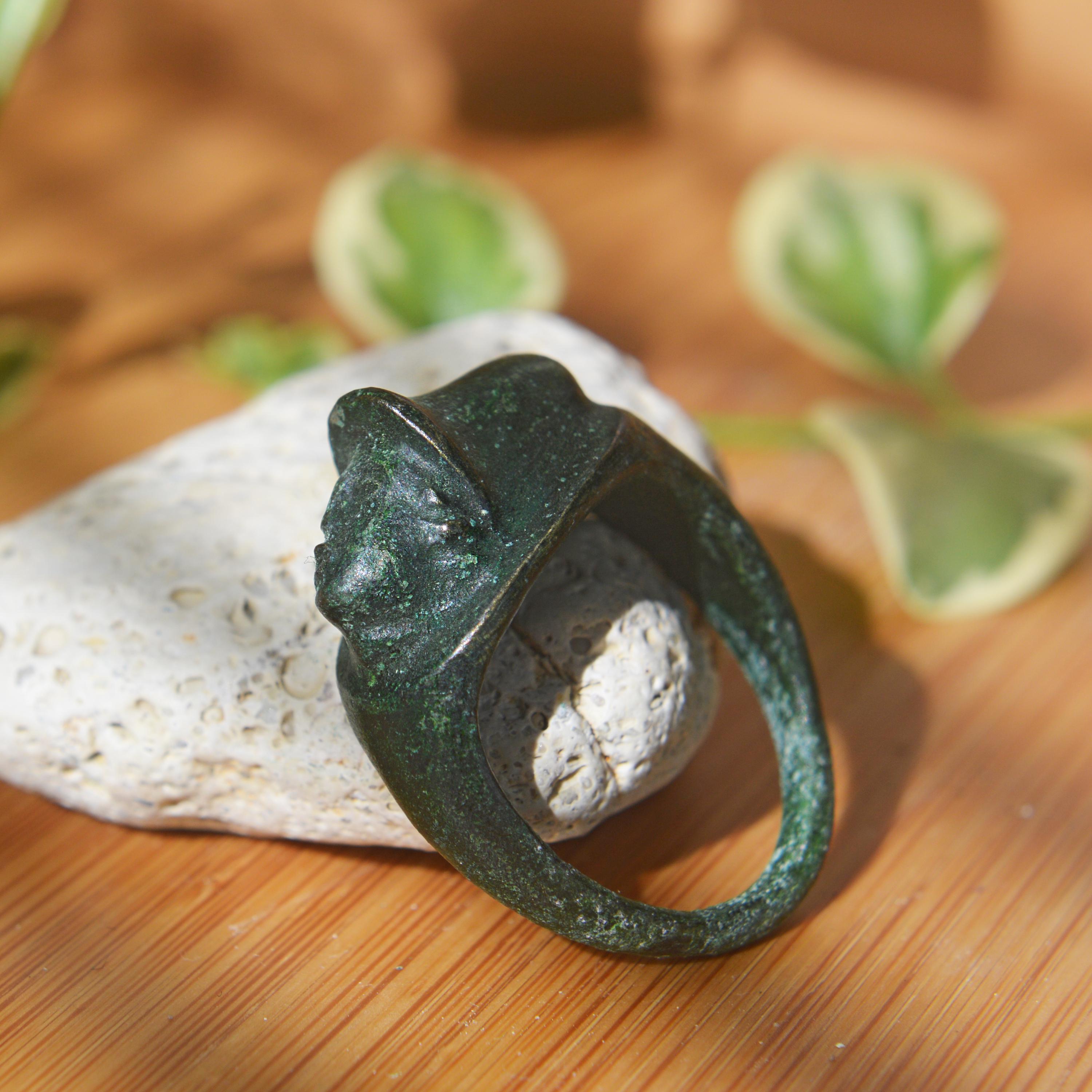 Roman Bronze God's Head Ring