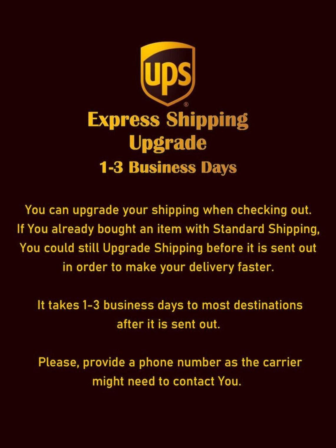 Express Shipping Upgrade! This is an Upgrade of the regular shipping. Express door to door service!
